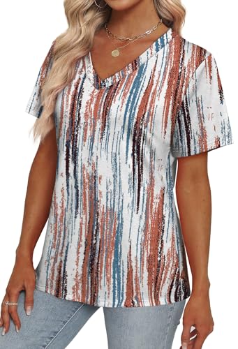Alaroo Womens Summer Tops 2025 V Neck Short Sleeve Shirts Trendy Dressy Casual Vacation Outfits Printed