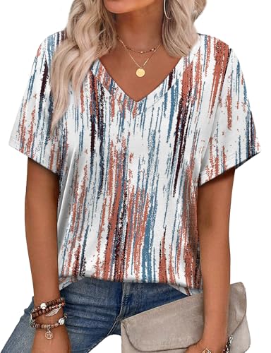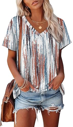 Specification: Alaroo Womens Summer Tops 2025 V Neck Short Sleeve Shirts Trendy Dressy Casual Vacation Outfits Printed