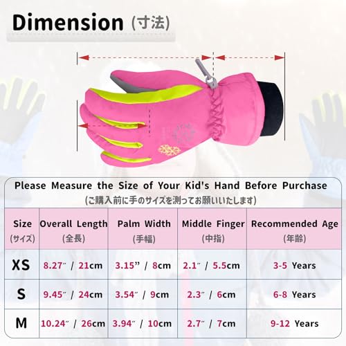 Three Sizes: Brightly colored gloves make them easy to spot and reduce the risk of losing them, with a 3D snowflake pattern for added seasonal appeal. Available in three sizes: XS for 3-5 year-olds, S for 6-8 year-olds, and M for 9-12 year-olds