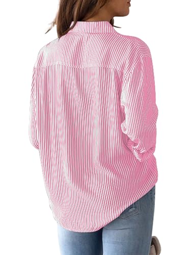 CUNLIN Grade 4 Wrinkle-Resistant Women’s Button Down Shirts Striped Long Sleeve Collared Blouses Tops with Pocket