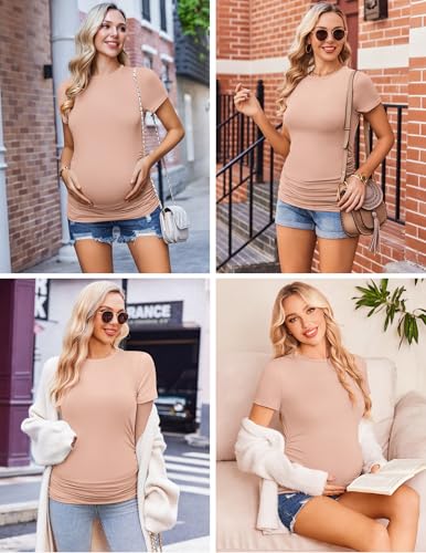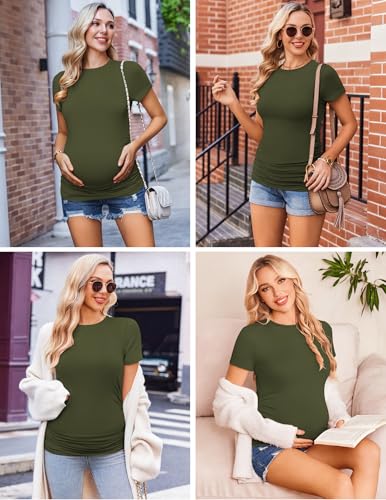 Ekouaer Womens Maternity Shirts Short Sleeve 3 Packs Crew Neck Pregnancy Tee Tops Tunic Blouse Soft Mama Clothes S-XXL