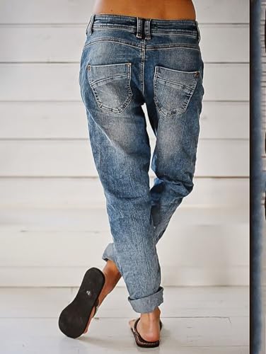 Flamingals Women’s Stretchy Straight Leg Casual Low Rise Jeans Wash Button Fly Stitch Detail 90s Trendy Denim Jeans