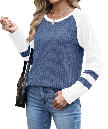 JomeDesign Womens Sweaters Long Sleeve Sweatshirts Color Block Casual Fall Shirts 2025 Trendy S-2XL