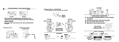 Specification: LASERLYTE Laser Sight Trainer for PICATINNY RAIL.LASER DOT for fast aim.LASER TRAINER for firearm training.PUSH BUTTON activation for simple use.AUTO-OFF to save battery life