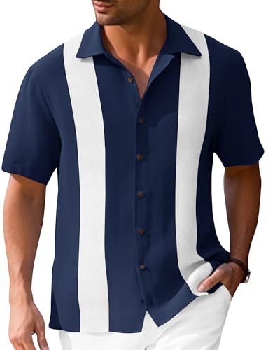 Mens Vintage Bowling Shirts Short Sleeve Button Down Guayabera Beach Shirts for Men