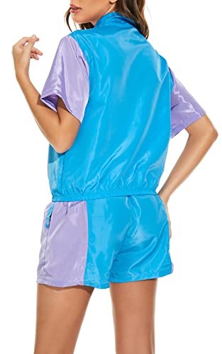 Yisfri Women’s Color Block Windbreaker 2 Piece Outfits Short Sleeve Zip Front Elastic Waist Tracksuit Set